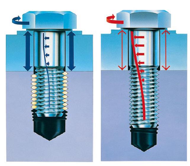 μG=變小且連續(xù)的螺紋摩擦力導(dǎo)致了一個(gè)增強(qiáng)了的預(yù)壓力Fv τt=無(wú)螺紋部分的扭轉(zhuǎn)應(yīng)力的衰減
