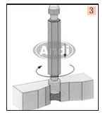 7、 取鋼絲螺套:在安裝過程中出現(xiàn)問題或者由于鋼絲螺套使用時間過久需要取出絲套,應(yīng)當(dāng)使用帶有刃的卸套工具對準(zhǔn)螺套端口,用榔頭猛打一下,用手加力按下手柄反螺紋旋轉(zhuǎn)即可退出鋼絲螺套。