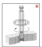 5、沖斷安裝柄 通孔時,要將絲套安裝柄沖斷,一般用沖斷器對準(zhǔn)安裝柄,用200g左右的榔頭猛擊一下即可去除,對于18×2.5以上的粗牙絲套和14×1.25以上的細牙絲套,用尖嘴鉗上下彎曲安裝柄就可去除。
